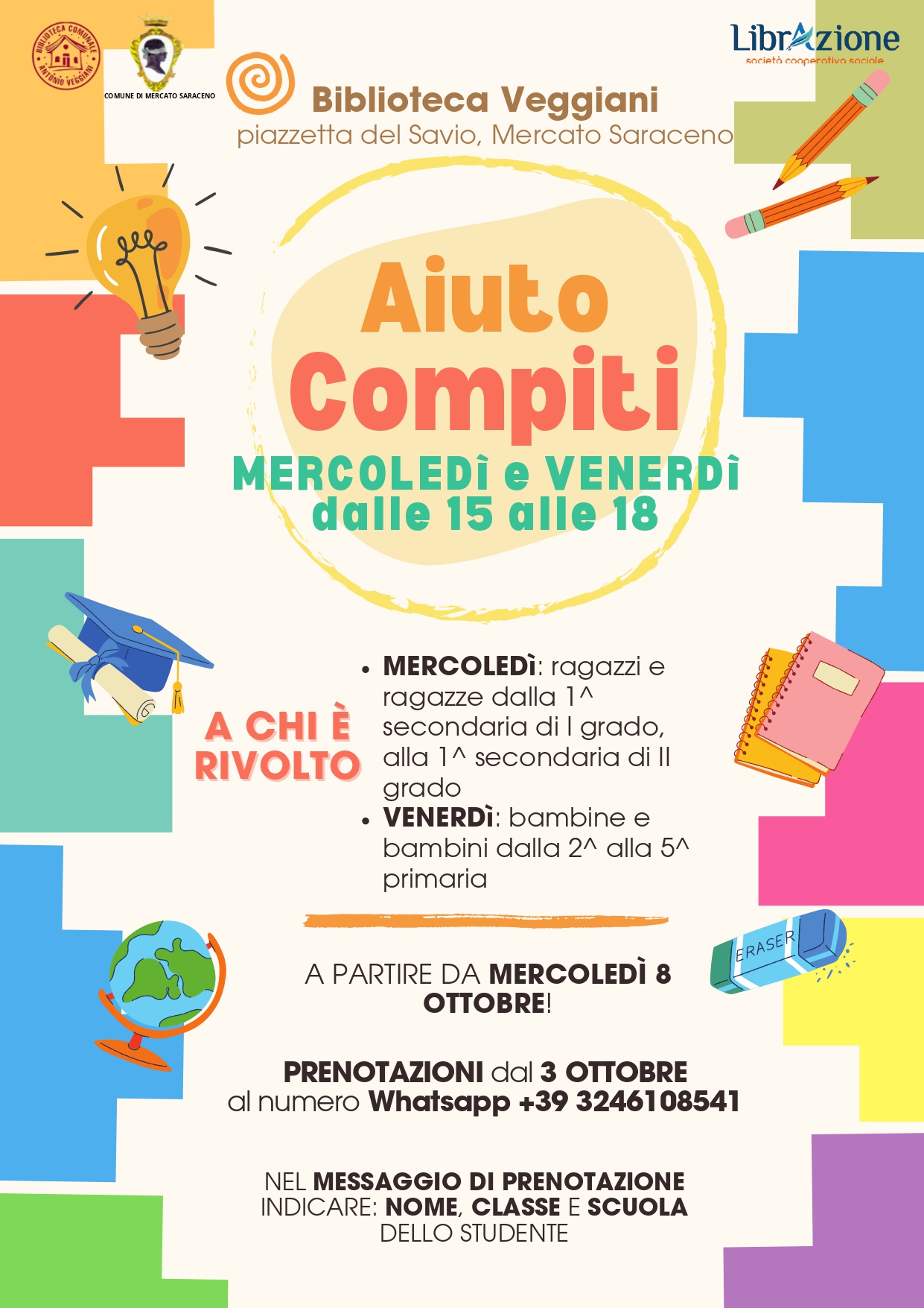 mercoledì dalle 15:00 alle 18:00 per ragazzi delle scuole medie e superiori
