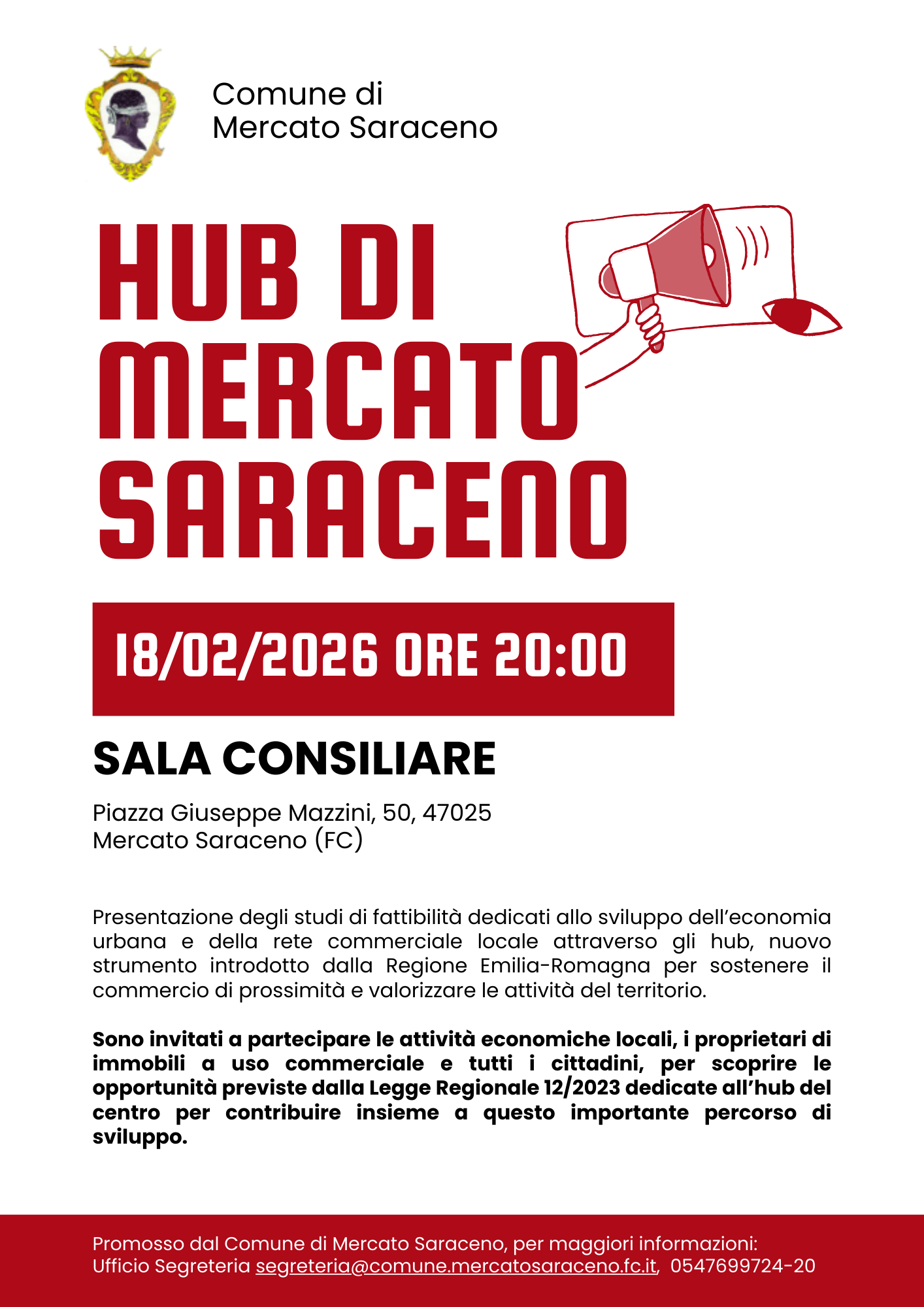 Presentazione dello studio di fattibilità dell'Hub Urbano di Mercato Saraceno. Nuovo strumento introdotto dalla Regione Emilia Romagna per sostenere il commercio di prossimità e valorizzare le attività del territorio.