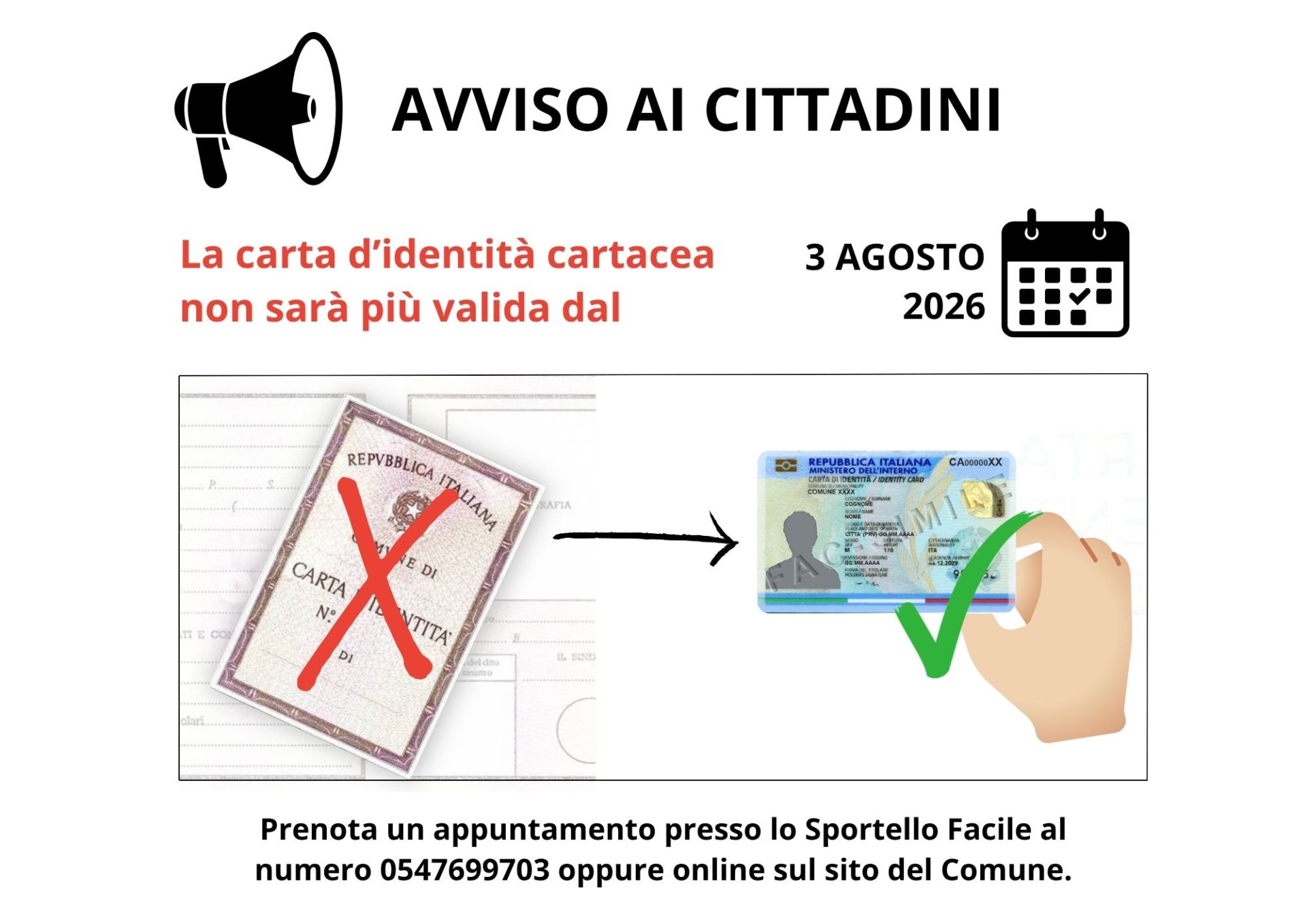 Si invitano pertanto tutti i cittadini residenti, possessori di carta d'identità cartacea, a provvedere con adeguato anticipo alla sostituzione del documento con la nuova Carta d’Identità Elettronica (CIE).