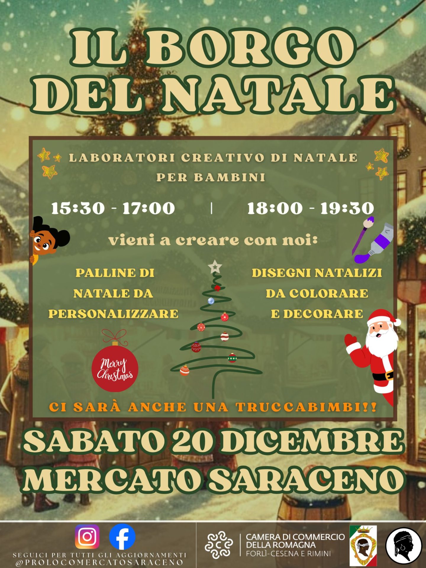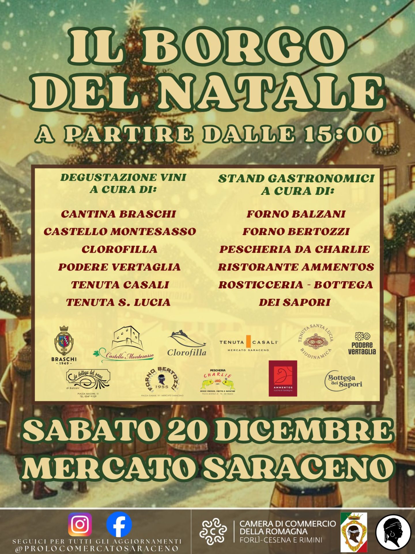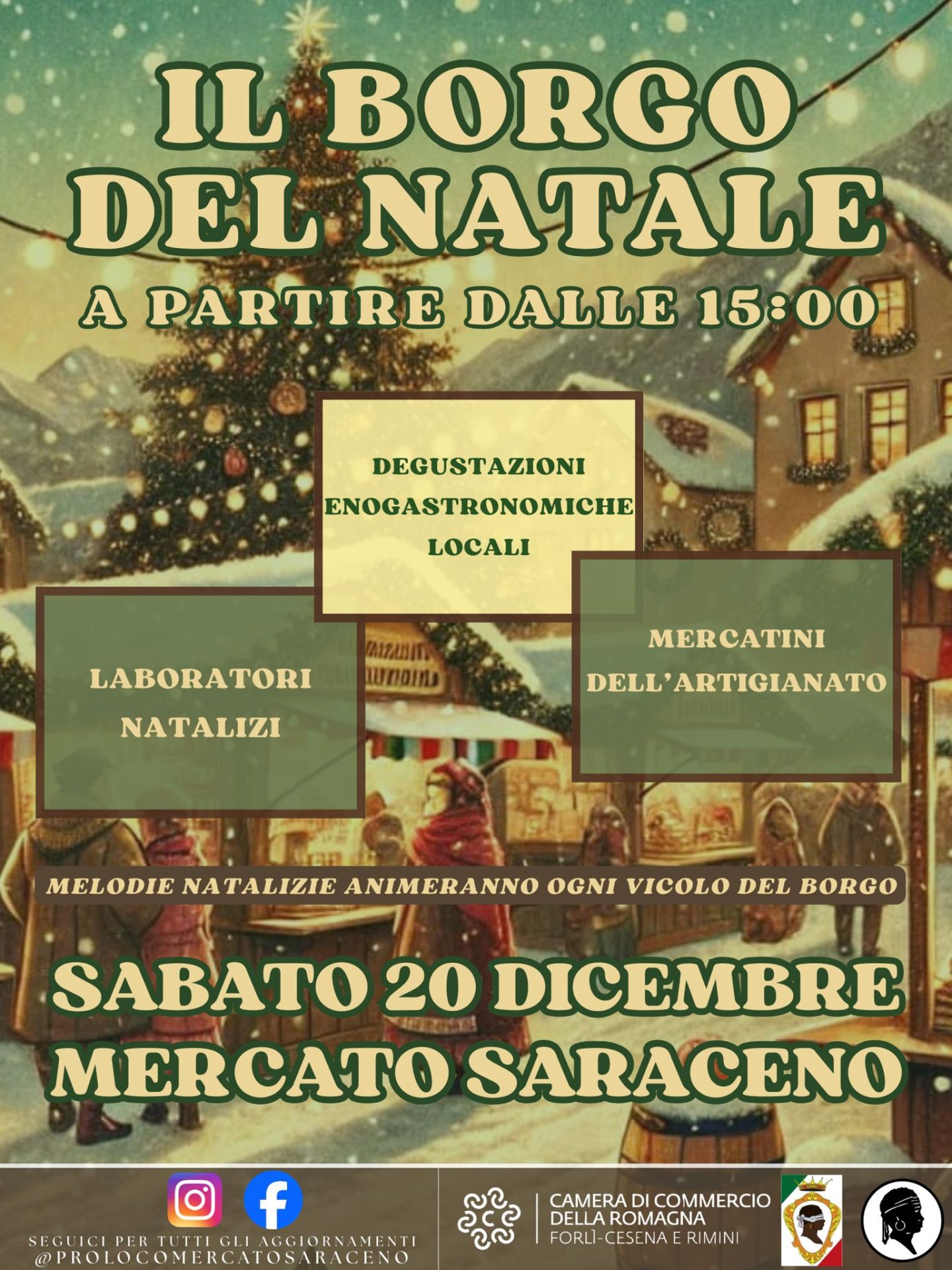 La Pro Loco di Mercato Saraceno con il patrocinio del Comune di Mercato Saraceno e il contribnuto della Camera di Commecio della Romagna invitano tutti al Borgo del Natale!