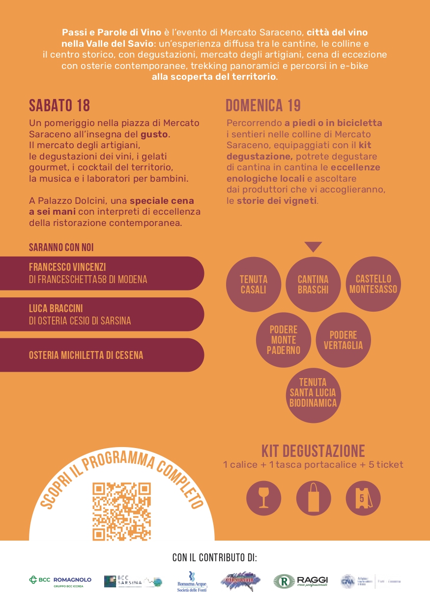 Il menu sarà accompagnato da una selezione di sei vini provenienti dalle cantine di Mercato Saraceno.