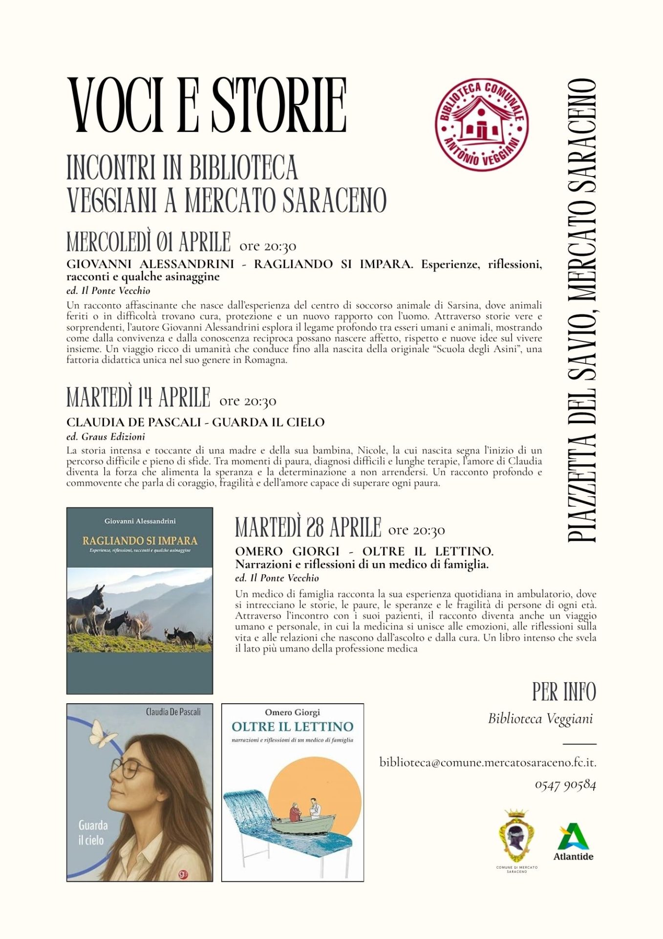 Riparte la rassegna culturale “Voci e Storie – Incontri in Biblioteca”, promossa dalla Biblioteca Veggiani di Mercato Saraceno, che anche quest’anno si propone come spazio di ascolto, confronto e condivisione, capace di dare voce a esperienze, idee e narrazioni del nostro tempo.